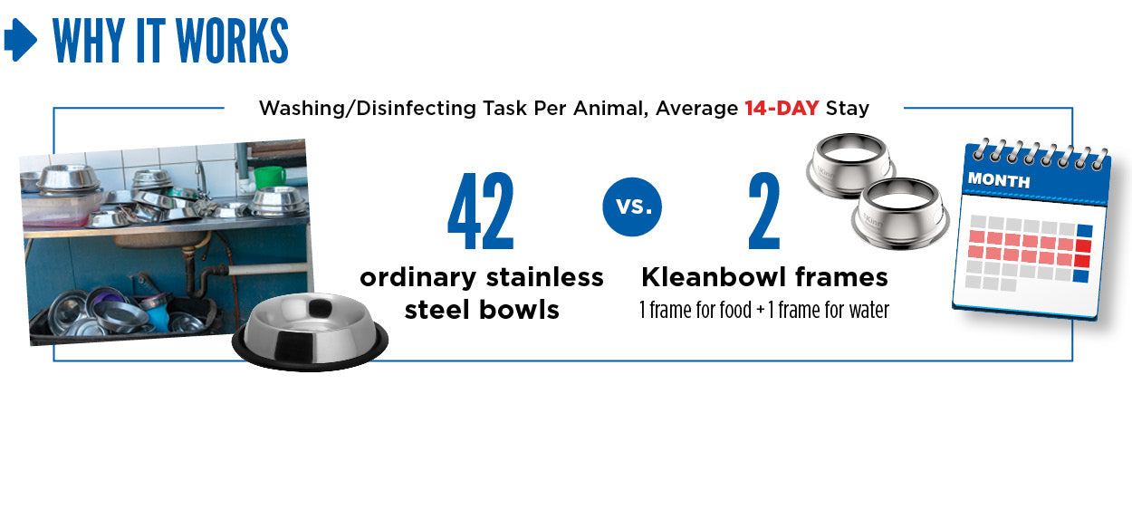 - Reduces Labor Hours Spent Bowl Washing by 80% for Lodging – 70 hours per month saved for 40 occupied enclosures